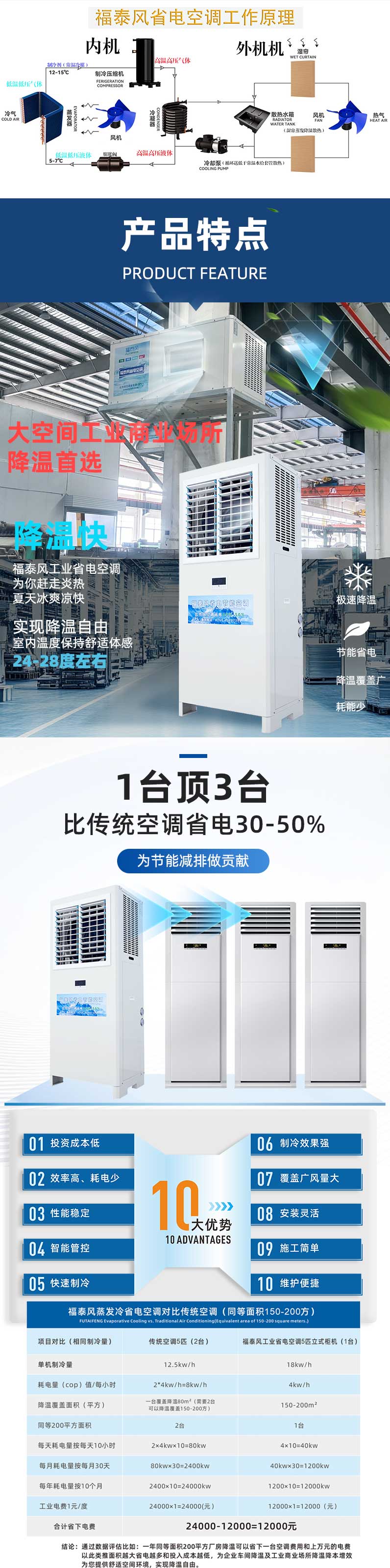 省電同時覆蓋面積比傳統空調面積大3倍,安裝便捷,維護便捷。受到工業商業場所降溫的青睞!